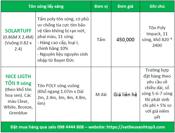 Tổng Kho An Lộc Phát xin kính gửi bảng giá tấm poly Bình Dương mới nhất dưới đây với đầy đủ các thương hiệu từ poly chất lượng, cao cấp nhập khẩu và có bảo hành sản phẩm theo tiêu chuẩn từ nhà sản xuất từ 5-10 năm. Quý khách hàng mua hàng, đặt hàng có thể liên hệ Hotline, Zalo An Lộc Phát để được tư vấn, báo giá phù hợp với nhu cầu!